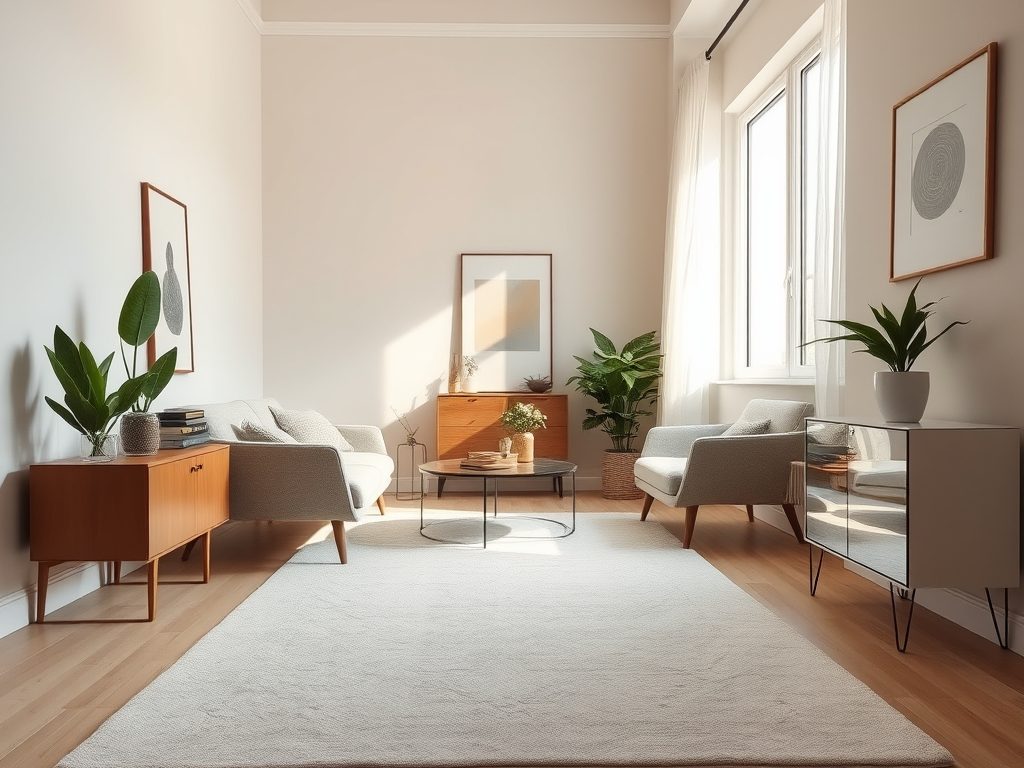 - Wybierz dywan o odpowiednim rozmiarze — unikaj zbyt małych dywanów, które nie scala przestrzeni.